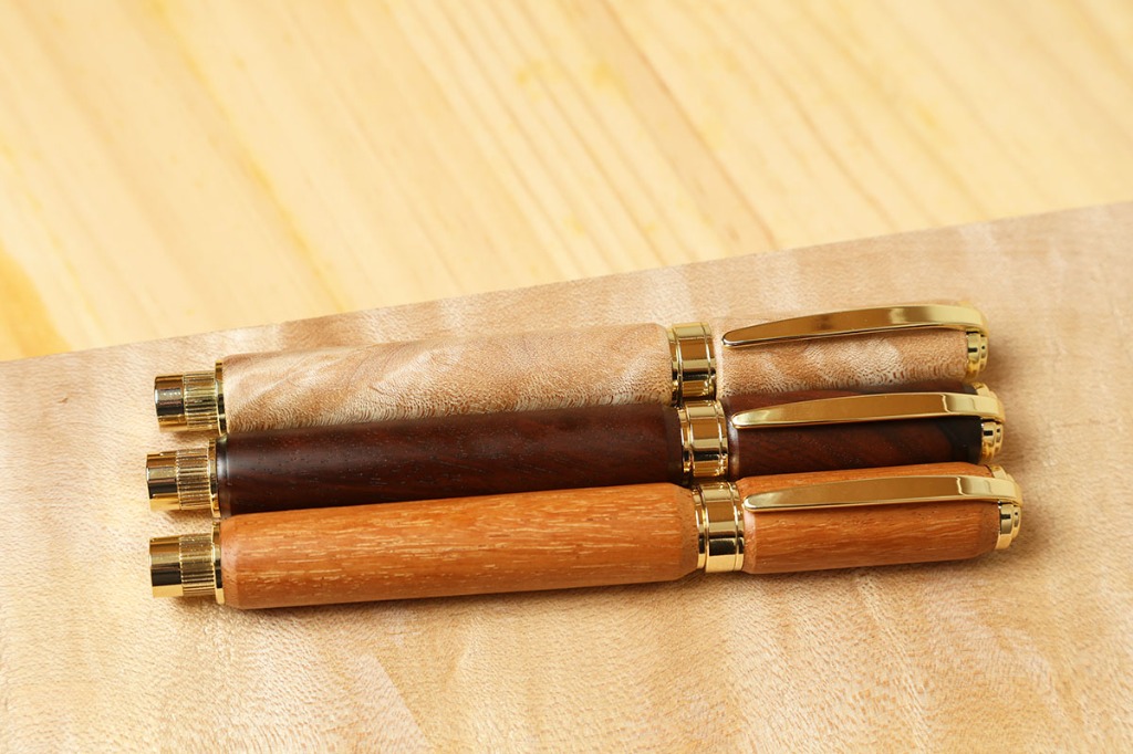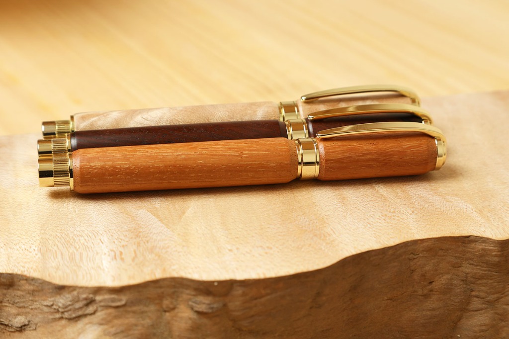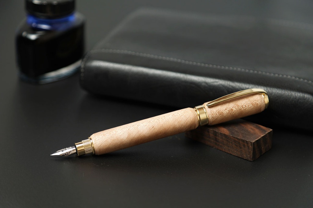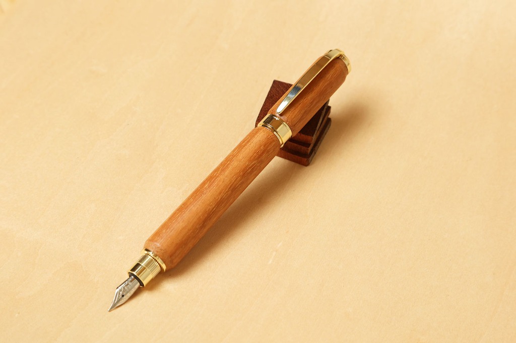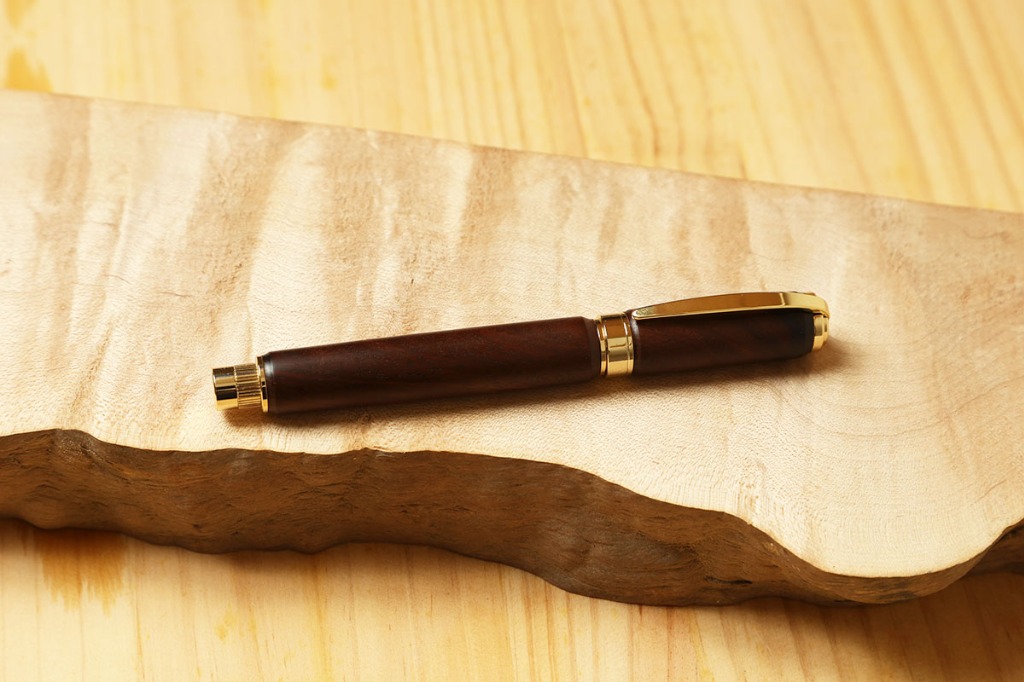 万年筆は筆記具のひとつではありますが、重厚で高級感があり、独特な書き味のある魅力的なアイテムです。万年筆には他の文房具と比べて筆圧による書き味の表情が出易く、使い込む程、ペン先が馴染み滑らかな書き味が得られます。また、ながい年月を経て育った銘木は、使う程、風合いが増してゆきます。
