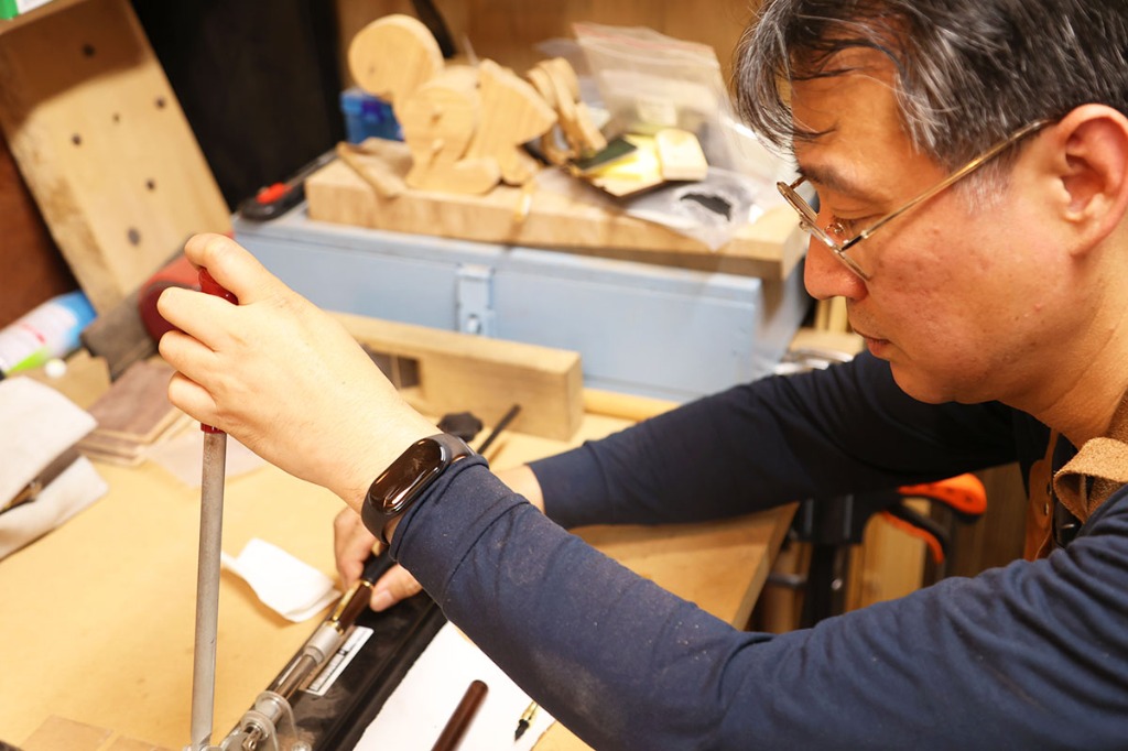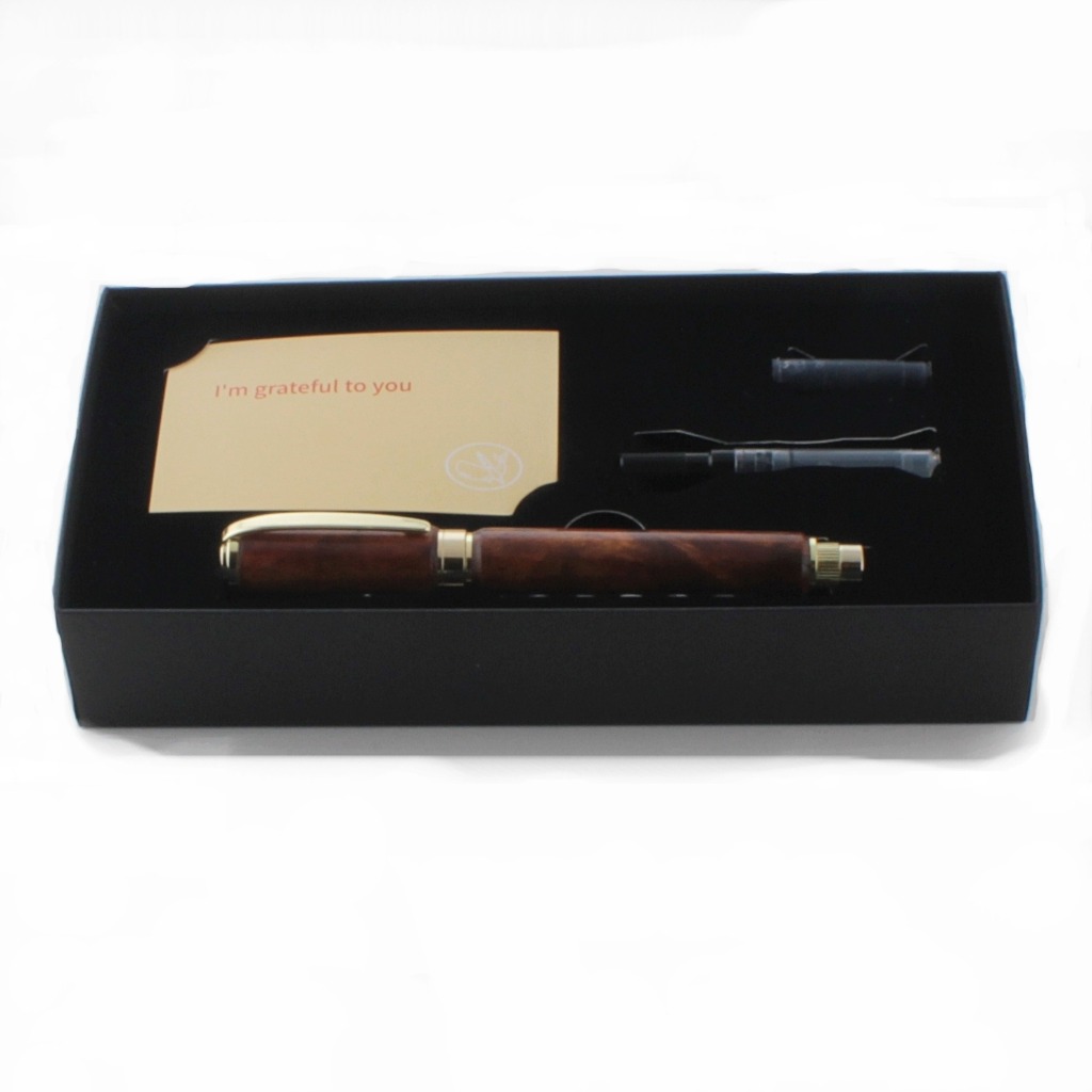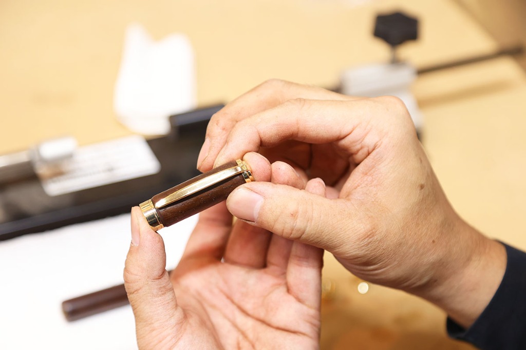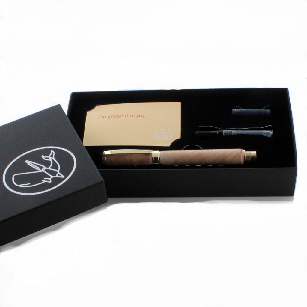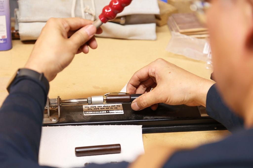 万年筆は筆記具のひとつではありますが、重厚で高級感があり、独特な書き味のある魅力的なアイテムです。万年筆には他の文房具と比べて筆圧による書き味の表情が出易く、使い込む程、ペン先が馴染み滑らかな書き味が得られます。また、ながい年月を経て育った銘木は、使う程、風合いが増してゆきます。